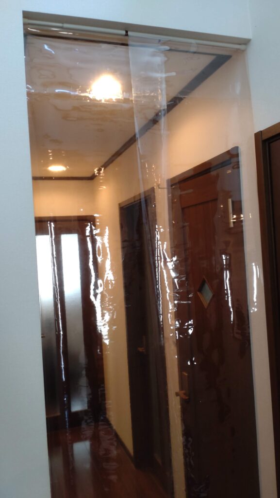 トイレや玄関、洗面所、窓のない廊下などをホームセンターなどで売っているビニールシート(インテリア売り場などにある切り売りのやつ)と突っ張り棒にて対策をしました。